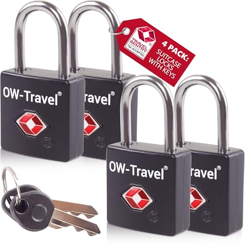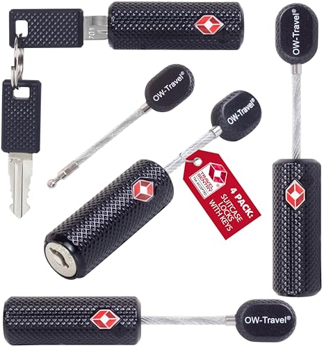 OW-Travel TSA-godkända Kabellås Hänglås (Svart 4-pack) Resväskelås med nycklar. Kraftiga hänglås med resväska med zinklegering med nyckellås för bagage, väska, fodral, ryggsäck, gymskåp