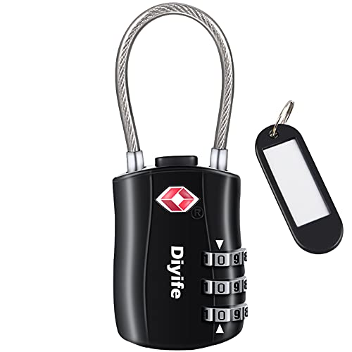 Diyife TSA Bagagelås, [Senaste Versionen] 3-Siffrigt Säkerhetshänglås, Kombinationshänglås, Kodlås för Resväskor Bagage Väska Fodral - Svart