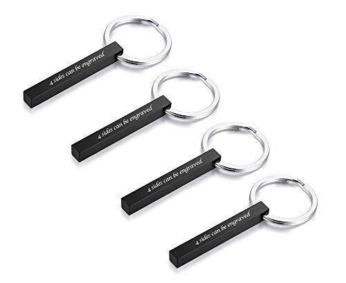 VNOX Personliga anpassade nyckelringar för par, BFF, bröder, systrar, familjepartner, 4 sidor, namn, 3D, vertikal, kubisk, stång, bagage/väska, tillbehör, gratis gravering, S, Rostfritt stål