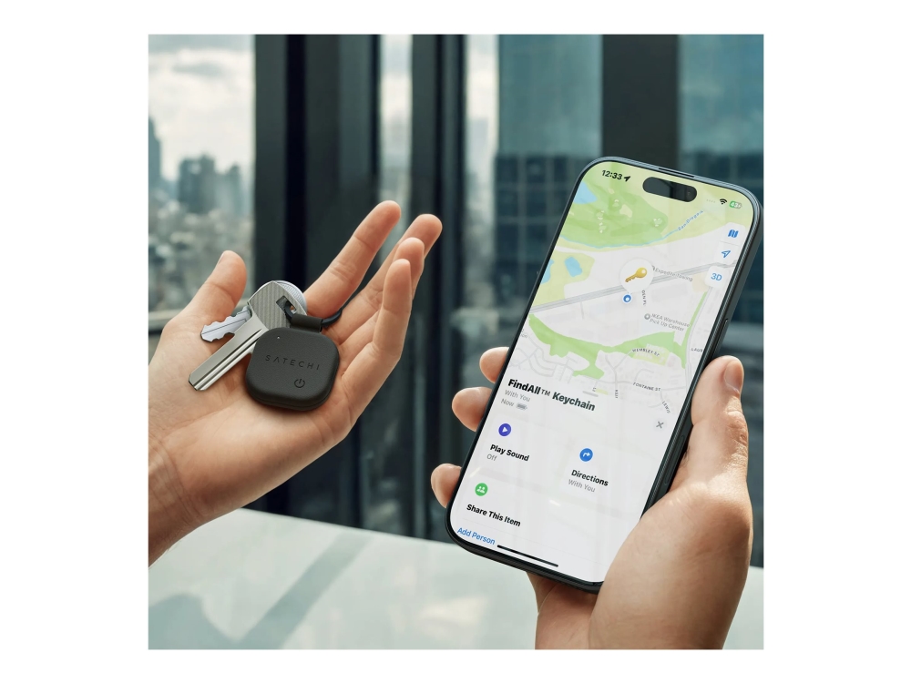 Satechi Findall St-Lkcfk - Bluetooth-Tagg Med Antiförlust För Nycklar, Väska, Bagage - Vegan-Leather - Svart