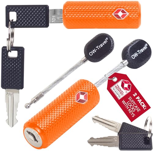 OW-Travel TSA-godkända Kabellås Hänglås (Orange 2-pack) Resväskelås med nycklar. Kraftiga hänglås med resväska med zinklegering med nyckellås för bagage, väska, fodral, ryggsäck, gymskåp