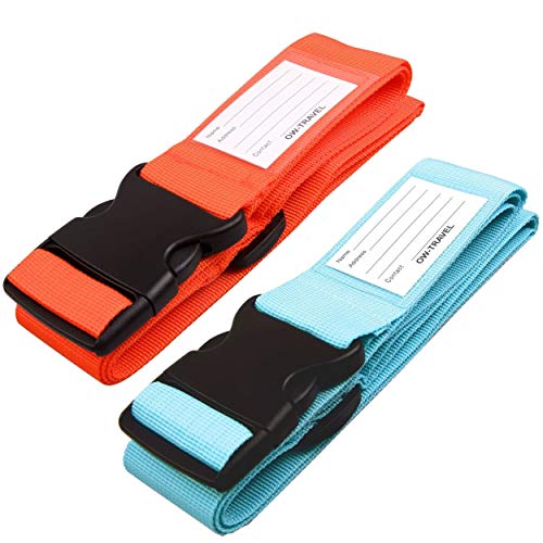 OW-Travel Personliga Bagageband för Resväskor (Blå 2-pack) Lätt Att Upptäcka Robusta Resväskremmar med Bagageetiketter. Resebälte för Resväska Bagage. Väska rem Fodral Bälten Resväska Rem