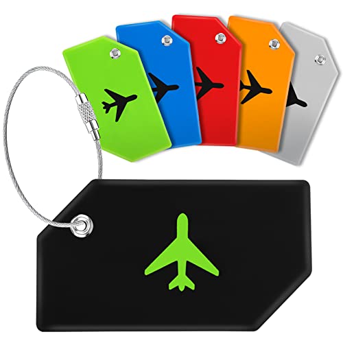 DUOUPA Bagageetikett med adressskylt, silikon bagageetikett resväska med rostfri kabel, bagagelapp för bagage resväska väska handväska (6 färger)