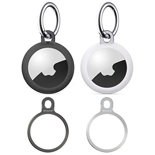 Stouchi 2-pack Airtag-nyckelringar med TPU-fodral, Air Tag Skyddsfodral i rostfritt stål Säker hållare Reptålig minimalistisk design kompatibel med 2021 AirTags för nycklar, väska, bagage