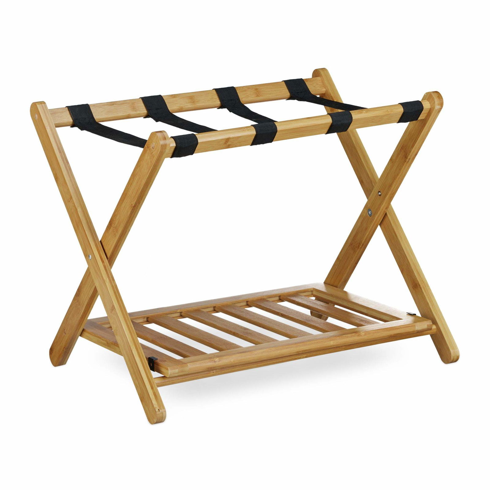 Relaxdays bagagebänk med extra förvaring, bagageställ hotellinredning, hopfällbar väskbänk, bagagehållare i bambu, natur