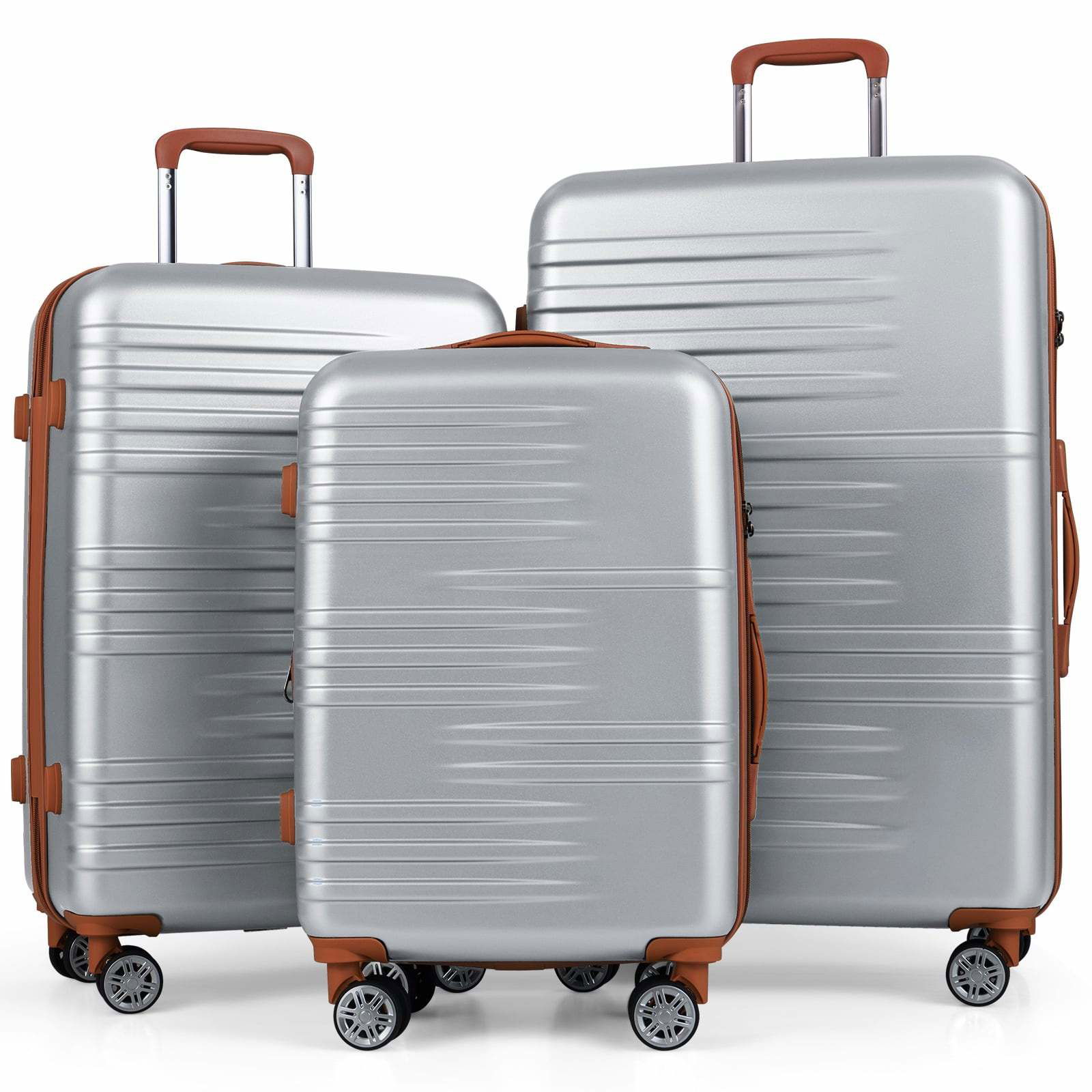 Suitline - Bagagevagevagn hård sida hård skal resväska expanderbar, TSA, (S, M & L), svart, SILVER, SET OF 3, Bagageset