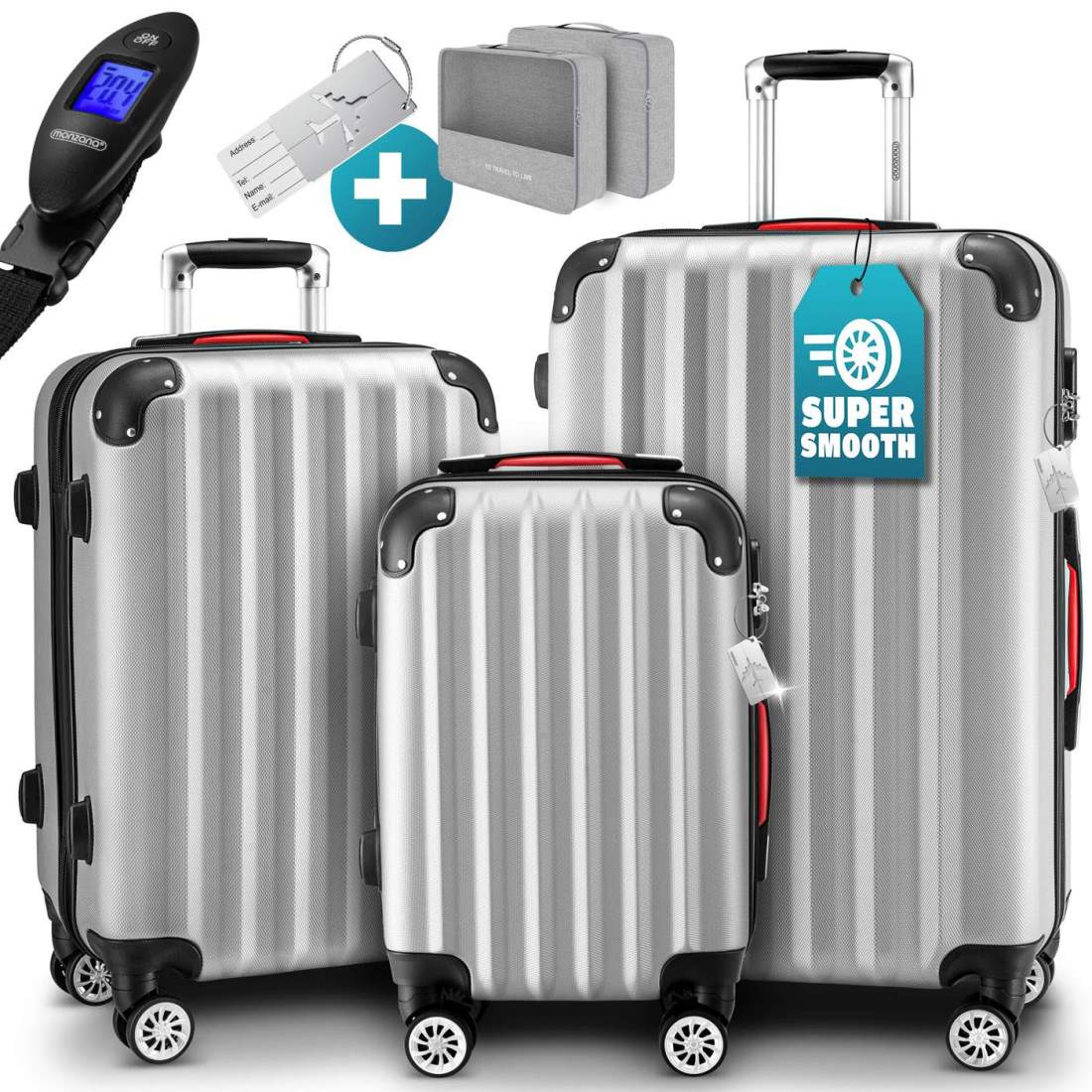 Suitline Koffer i 3 Größen, Vagnset Rollkoffer Hartschalen-Koffer Reisekoffer (55 cm, 66 cm, 76 cm) Zwillingsrollen, 15 Verschiedene Farben, gUL, SET OF 3, Bagageset