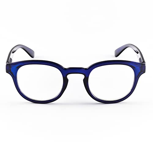 ZENOTTIC Glasögon med blåljusfilter som motverkar yrsel för kvinnor och män, retroglasögon med lätta och runda bågar med styrkan +1,5 (kristall)
