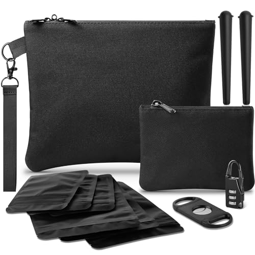 Luktsäker väska – mini och stor luktsäker behållare + 2 dobrör + 6 luktsäkra baggies och lås, ogräspåse för röktillbehör, Svart, 2 Pack: Small + Large, Kompakt
