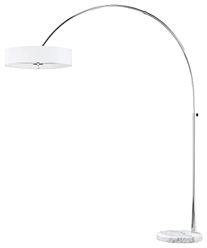 Trio lampor båglampa i krom, marmorfot vit, tygskärm vit, exkl. 3 x E27 max. 60 W, 421100302