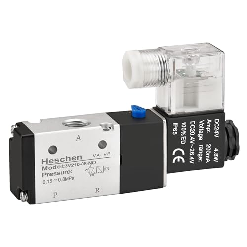 Heschen Elektrisk pneumatisk magnetventil, 3V210-08-NO, 24VDC, PT1/4 tum, 2 positioner 3-vägs, normalt öppen typ, enkel spole pilotdriven elektrisk