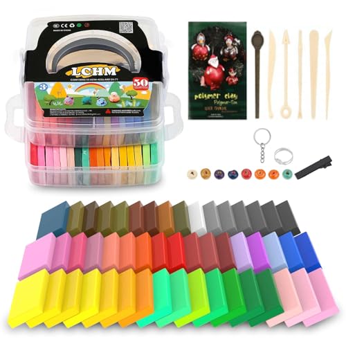LCHM Polymerlera 50 färger 1,25 kg/1,2 kg giftfri ugn baka lerblock set modelleringslera gör-det-själv hantverkssatser bästa jul- och födelsedagspresenter för barn