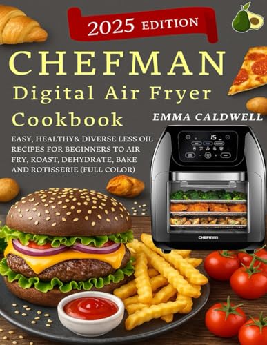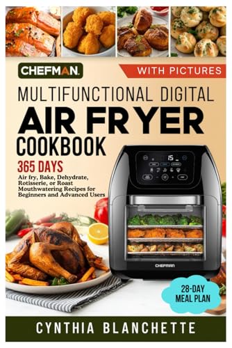 CHEFMAN Multifunctional Digital Air Fryer Cookbook with Pictures: 365 Days to Air fry, Bake, Dehydrate, Rotisserie, or Roast Mouthwatering Recipes for ... Including a 28-day Meal Plan for Busy People.