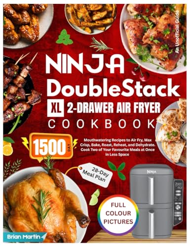 Ninja DoubleStack XL 2-Drawer Air Fryer Cookbook with Full Colour Pictures: 1500-Day Mouthwatering Recipes to Air Fry, Max Crisp, Bake, Roast, Reheat, ... at Once in Less Space | 28-Day Meal Plan.