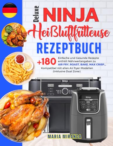 Deluxe Ninja Heißluftfritteuse Rezeptbuch: +180 Einfache und Gesunde Rezepte enthält Nährwertangaben zu AIR FRY, ROAST, BAKE, MAX CRISP,,, Kompatibel mit allen Air fryer-Modellen (Inklusive Dual Zone)