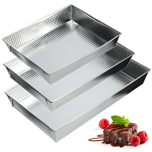 KADAX Rektangulär bakform, bakplåt i 3 storlekar, höga plåtkanter för kakor, rostbröd, ostkaka, brownie, lättskött lådform, värmefördelning (silver, set om 3)