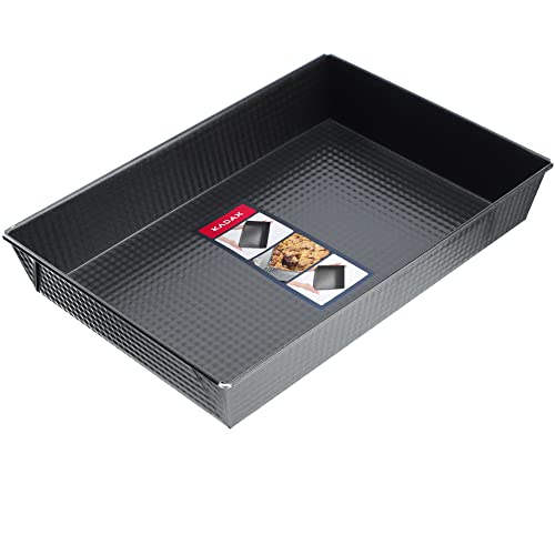 KADAX Rektangulär bakform, bakplåt i 3 storlekar, med höga plåtkanter för kakor, rostbröd, ostkaka och brownies, lättskött lådform med bra värmefördelning (40 x 25,5 cm, svart)