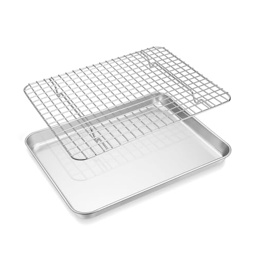 Bakplåt med kylgaller, Joyfair rostfritt stål, stor ugnsplåt, kakplåt och kakgaller-set, 31,6 x 24,5 x 2,5 cm, rektangulär bakform och kylgaller för bakning/stekning/kylning, diskmaskinssäker