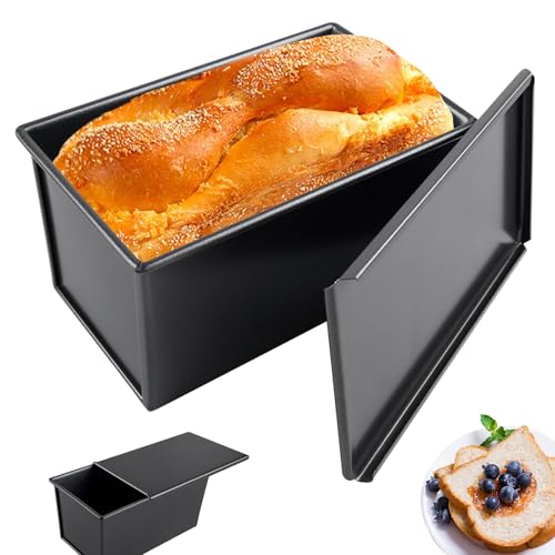 BORDEAG Brödform med lock, nonstick brödform, kaka, bakform, rektangulär för bakning av bröd, kakform, brödform, brödform bröd upp till 230 °C, 22,8 x 12,3 x 11 cm