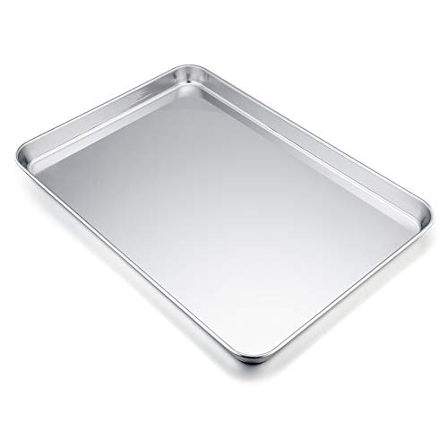 TEAMFAR bakplåt, rostfritt stål rektangulär bakform ugnsplåt, ugnsskål för bakning, 31,6 x 24,6 x 2,5 cm, hälsosam och hållbar, högglanspolerad och lätt att rengöra, diskmaskinssäker