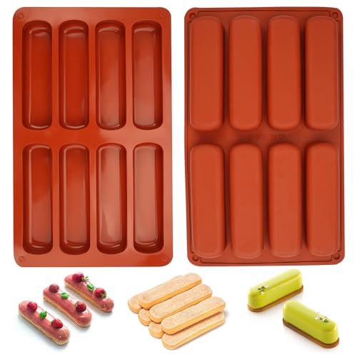 2 stycken müslibarer bakformar, silikonform med 8 hålor non-stick bar bakform, stor rektangulär energibar silikon bakform för müslibarer, muffins, choklad, brownie, ostkaka, chokladkaka