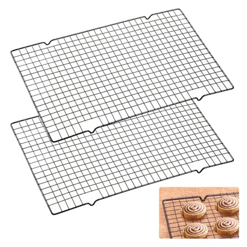 2 stycken kylgaller rostfritt stål, 40 cm x 25 cm x 2 mm kylgaller, bakgaller, rektangulärt med non-stick-beläggning, galler för bakning för kyla, grillning, stekning, etc., svart