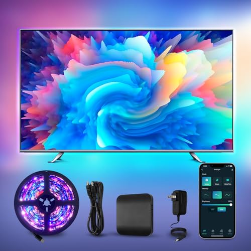 HOTUT LED-TV-bakgrundsbelysning, 5 m RGB LED-remsa för TV, APP-kontroll synkronisering med musik, smart LED-remsa för TV 75-85 tum, LED-ljusremsa för TV PC bildskärm
