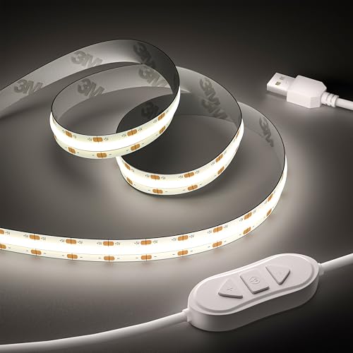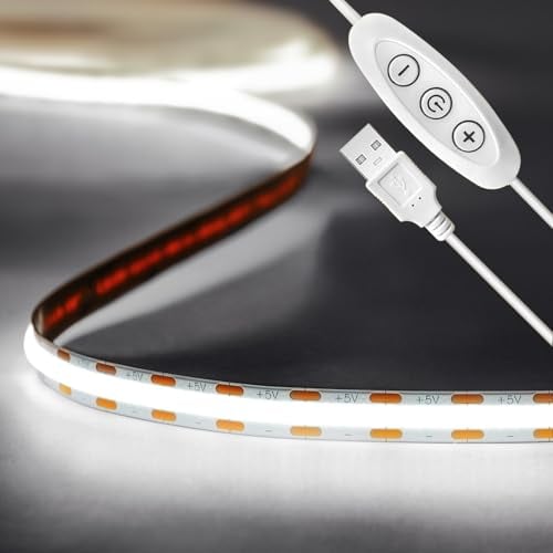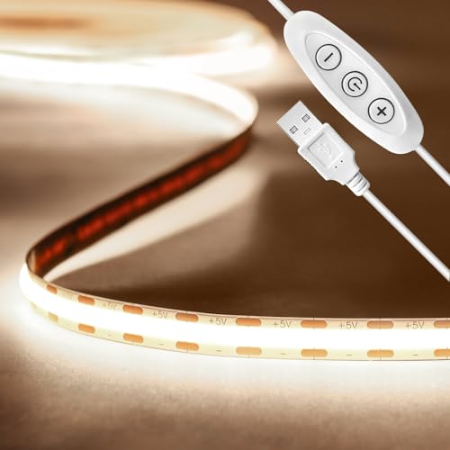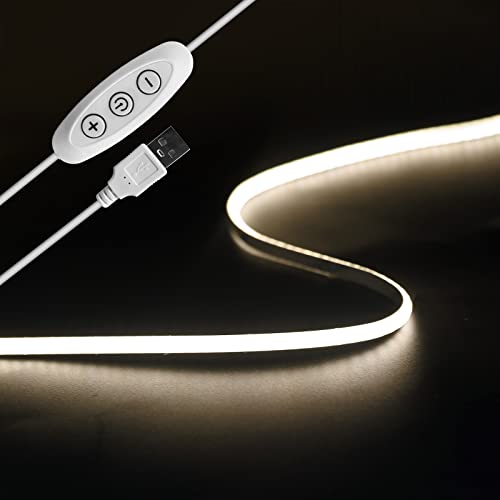 GINGSOW USB COB LED-remsa 5 V varm vit 3 000 K 1 m, 320 lysdioder dimbar COB LED-remsa lampor CRI80 TV bakgrundsbelysning, flexibel LED band undergolvlampa för kök, hem gör-det-själv belysning