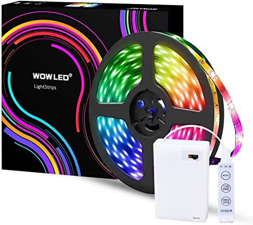 WOWLED 2,0 m (2 m) RGB LED-remsa lampor drivs av batteri, flerfärgad flexibel färgskiftande tejp ljus humörlampa för TV-bakgrundsbelysning gör-det-själv fest heminredning