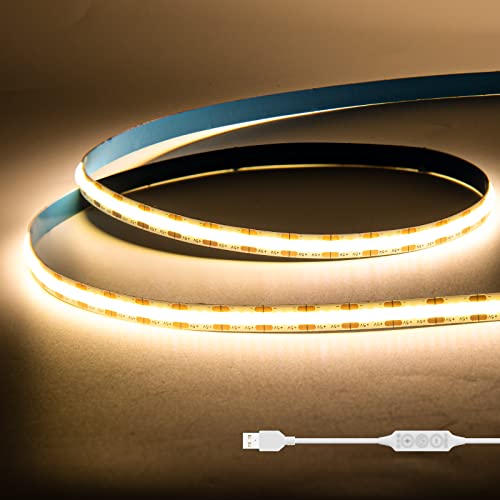 TTWAY USB COB LED-remsa 2 m, 5 V 3 000 K LED-remsa med 320 lysdioder/M, CRI 90+, 8 mm bred, LED-remsa varm vit för TV-bakgrundsbelysning, spegel, garderob, trappor, gör-det-själv-ljus, heminredning
