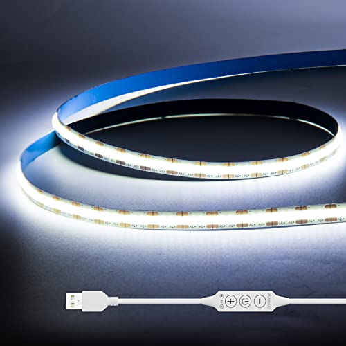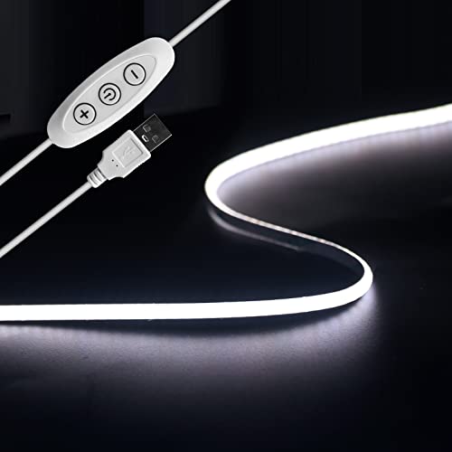 GINGSOW USB COB LED-remsa 5 V 1 m kall vit 6 000 K, 320 lysdioder dimbar COB LED-remsa lampor CRI90 TV bakgrundsbelysning, flexibel LED band undergolv för kök, hem gör-det-själv belysning