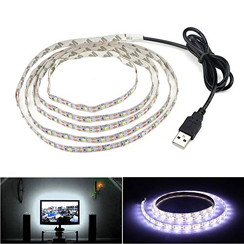 LED-belysningsremsor, USB TV bakgrundsbelysning 6,56 fot/2 m LED-band ljus för 40–60 tums HD-tv, inte vattentät SMD 3528 5 V dagsljus vit Bias Lighting, förskjutning för hemmabios