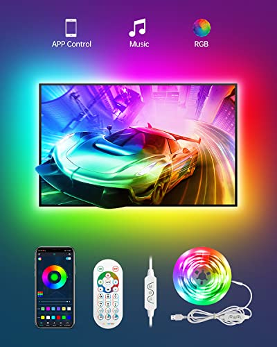 Daymeet LED-lampor för TV, TV-bakgrundsbelysning 3M USB LED-ljusremsa för 32-60 tums TV-skärm bakom belysning, RGB-färgskiftande TV-lampor med fjärrkontroll musik synkronisering Bluetooth APP-kontroll