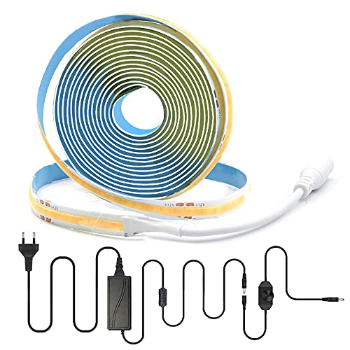 COB LED-remsa 5m,Fosingut DC12V 2.7mm LED Strip Varmvit 3000K,CRI90+ 480LED/m Remsor ljuskedja,Flexibel Självhäftande repljus neonljus för TV-bakgrundsbelysning,Kök,Sovrum,DIY Dekor(Endast Strip)