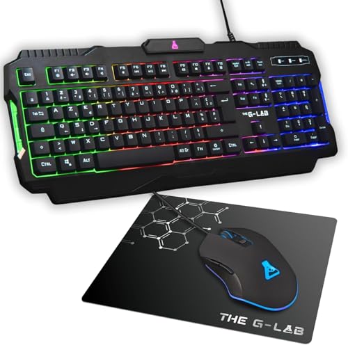The G-Lab Helium Combo - 3-i-1 spelset - bakgrundsbelyst Azerty Gamer tangentbord, 6 400 Dpi gamer-mus, halkfri musmatta - 6 anti-ghosting-tangenter - PC/PS4/PS5/XBOX-paket