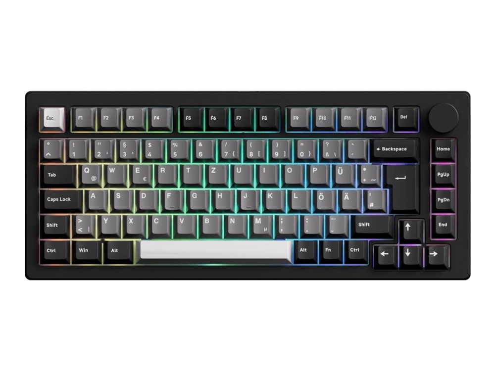 Akko Monsgeek M1 V5 Series Via - Tangentbord - Anpassad, Mekanisk - 75% - Bakgrundsbelyst - Trådlös - Bluetooth 5.0, 2.4 Ghz, Usb-C - German/Uk/Nordic - Tangentbrytare: Akko Rosewood - Svart & Silver