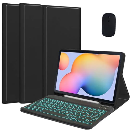 GUPENAA Tangentbordsfodral för Lenovo Tab M10 FHD Plus (2:a Generationen) 10,3" (TB-X606F/TB-X606X), 7 Färg Bakgrundsbelyst, Magnetiskt Löstagbart Trådlöst Bluetooth-Tangentbord med Mus,Black