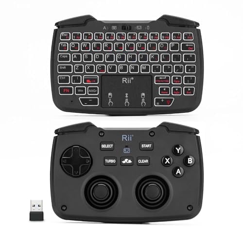 Rii RK707 Mini tangentbord och mus kombo med styrplatta, medietangentbord mus med spelkontroll, 62-tangenter uppladdningsbar bakgrundsbelyst turbo vibration för PC/Raspberry pi2/Android TV Google/TV