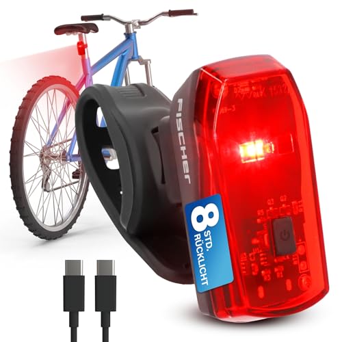 Fischer Basic Cykel Bakljus – LED cykelljus bak med batteri – USB-C laddning och 8 h ljustid – godkänd StVZO