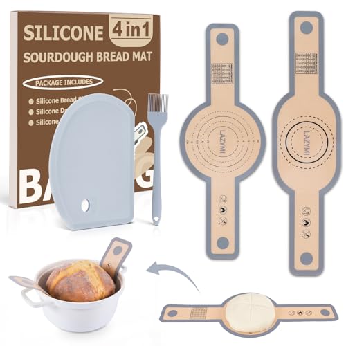 Lazymi 2 stycken bakmattor i silikon bröd för holländsk ugn, oval och rund silikonbrödslinga med långa handtag för brödgryta, brödbakmatta med degskrapa och bakborste, permanent bakmatta bröd, Grå