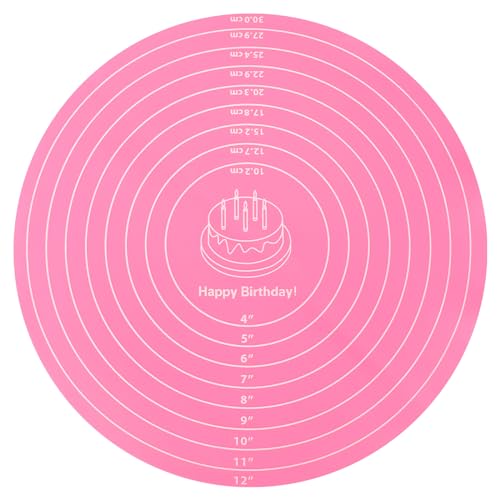 Oruola Bakmatta i silikon, rund bakmatta med storleksuppgifter, non-stick belagd, rosa