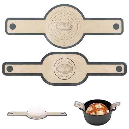 Bakmatta i silikon för holländsk ugn, set med 2 – non-stick brödsele med värmebeständiga handtag, återanvändbar bakmatta för surdegsbröd, pizza och kex (rund och oval)