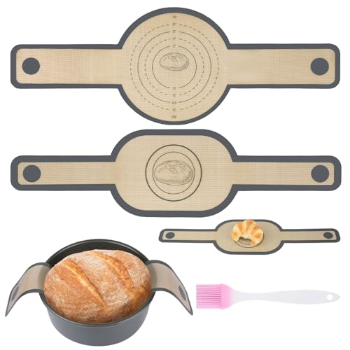 2 stycken bakmattor i silikon för holländsk ugn, bakmatta bröd med långa handtag, silikonmatta bakning med 3 skrapor och 1 kryddborste, återanvändbar bakunderlägg, silikon för deg