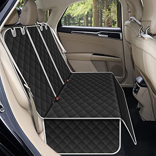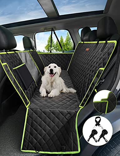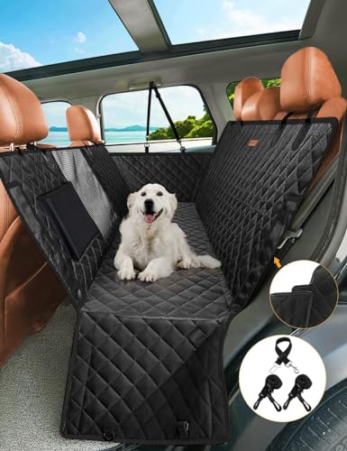 Pecute Hundtäcke för bil baksäte med nätfönster (146 x 136 cm), vattentät och halkfri bagagefilt för hundar, bilöverdrag med säkerhetsbälte, baksätesskydd för hundar