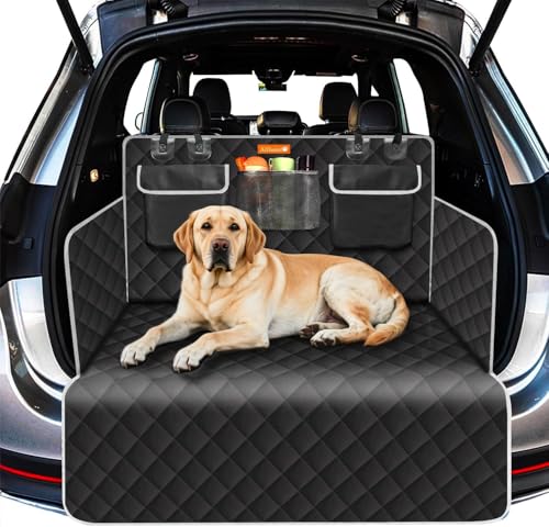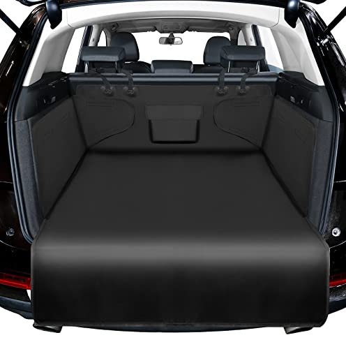 Alfheim Bilbagageskydd för hund, slitstarkt och vattentätt, halkfritt tvättbart baksätesskydd för hund med sidoskydd, universellt för bil, egendom, lastbilar, SUV (svart)