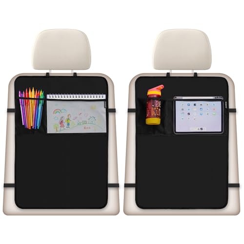 Ryggstödsskydd för bil, för barn, 2 styck, UIHOL baksätesförvaring för bil, stora fickor, 600D oxfordtyg, vattentätt, baksätesskydd med ficka för 12 tums iPad surfplatta, sparkskydd för bilstol