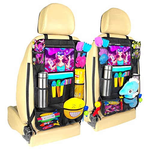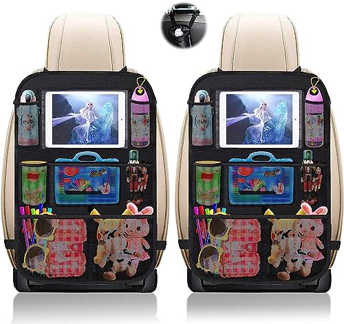 Helteko Bilorganiserare för baksäte, sparkmattor, baksätesskydd med pekskärm, surfplattehållare, organiserare för barn, resetillbehör, matta 9 förvaringsfickor 2-pack
