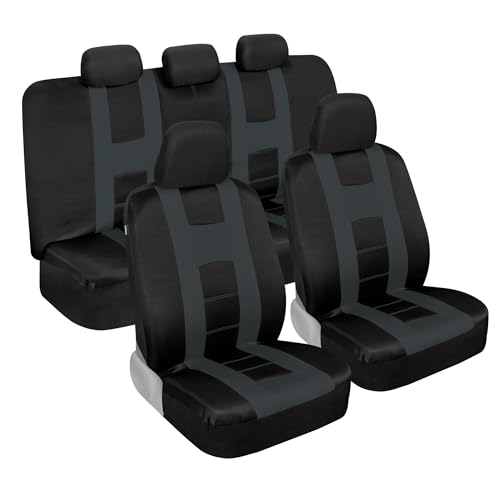 BDK carXS träkol grå tvåfärgat bilsätesskydd med matchande baksätesskydd, gjord för att passa de flesta bilar lastbilar skåpbilar, bilar, interiörbilstillbehör, komplett set