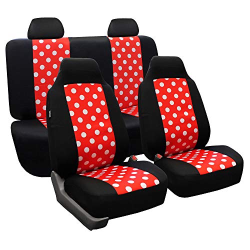 FH Group komplett set bilsätesöverdrag röd svart tyg – universell passform bilsätesskydd, 1 st framsätesskydd, massivt baksätesskydd, tvättbart bilsätesskydd för SUV, sedan, skåpbil, biltillbehör