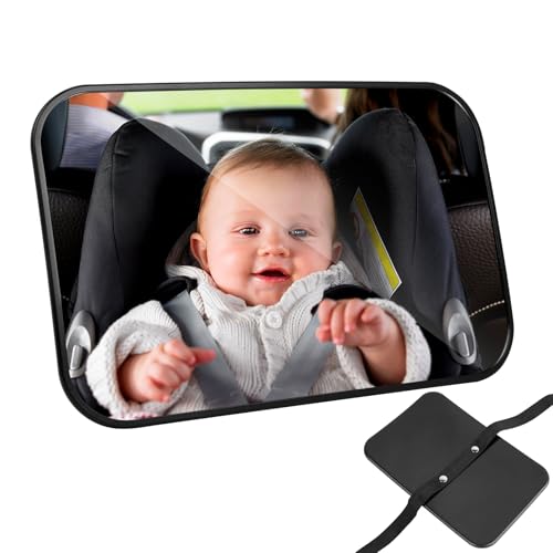 AiQInu Bilspegel för baksätet stor, okrossbar baksätesspegel, spegel bil svängbar för barnstol och barnstol – svart